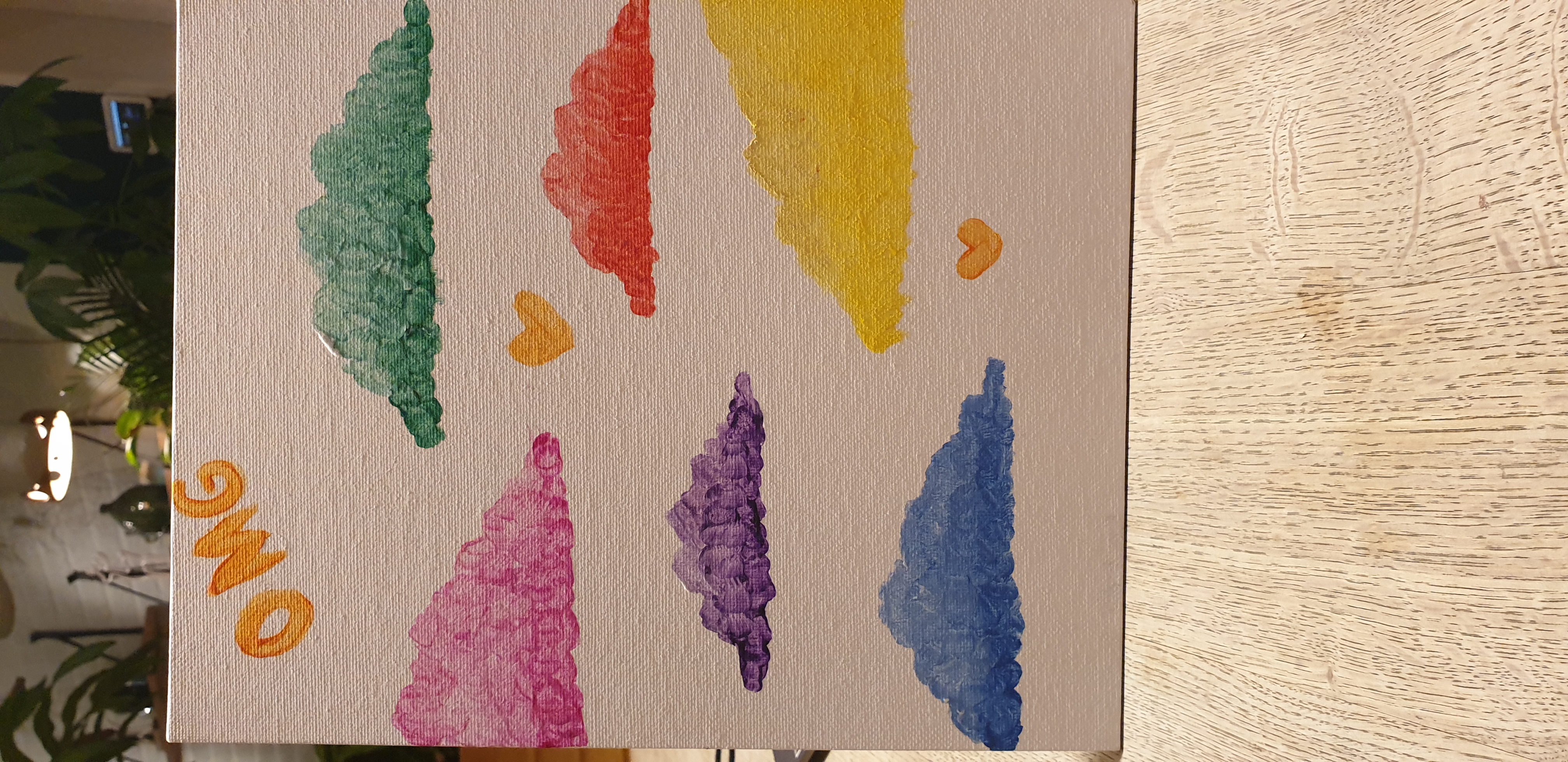 gekleurde wolken met Orange hartjes en ‘OMG’